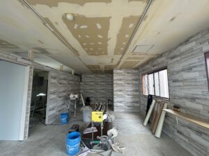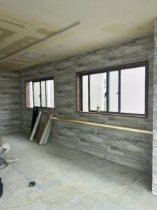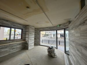 壁のデザインや大きな窓から差し込む光を見ると、完成したときの雰囲気を想像せずにはいられません。
